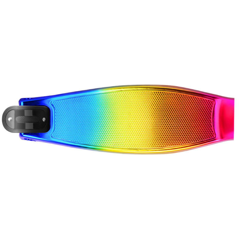 Introducing the world’s first Rainbow Chrome plated 3 Wheel Kick Scooter for kids, designed to turn heads and create a fun riding experience. Hand-sprayed in vibrant shades of pink, yellow, green, and blue, this unique color-blended finish ensures your child stands out from the crowd. Perfect for children aged 5 and older, our 3 Wheel Foldable Scooter is engineered with travel in mind, making it ideal for commuting in style or enjoying outdoor adventures. Incorporating feedback from customer research, this scooter features a lean-to-steer mechanism that helps nurture balance and stability. With double stacked rear wheels that provide bright flashing lights and a durable stomp brake, it offers both safety and functionality.