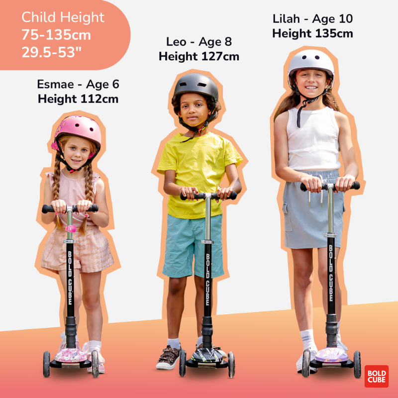 The scooter’s bold colors and eye-catching design showcase your little one’s personality while ensuring visibility with rear wheel light reflectors and bright flashing wheels. Its foldable handlebar has a simple pull-to-fold design, making it easy for kids to store and carry after the school run. Plus, all BOLDCUBE scooter parts are replaceable, and each scooter comes with a set of Allen keys for hassle-free maintenance. Your child can enjoy endless fun while you rest easy knowing their scooter is built to last through the usual wear and tear.