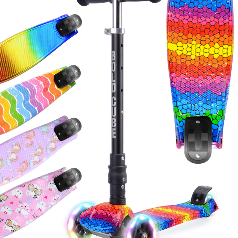 Bright colors and eye-catching designs let your little one showcase their style, while rear wheel light reflectors and flashing wheel stickers ensure visibility day and night. The foldable handlebar is designed for convenience, allowing kids to easily fold it for storage or carrying after the school run. Plus, all BOLDCUBE scooter parts are replaceable, and each scooter comes with a set of Allen keys for hassle-free maintenance, ensuring that your child can enjoy their scooter for years to come.
