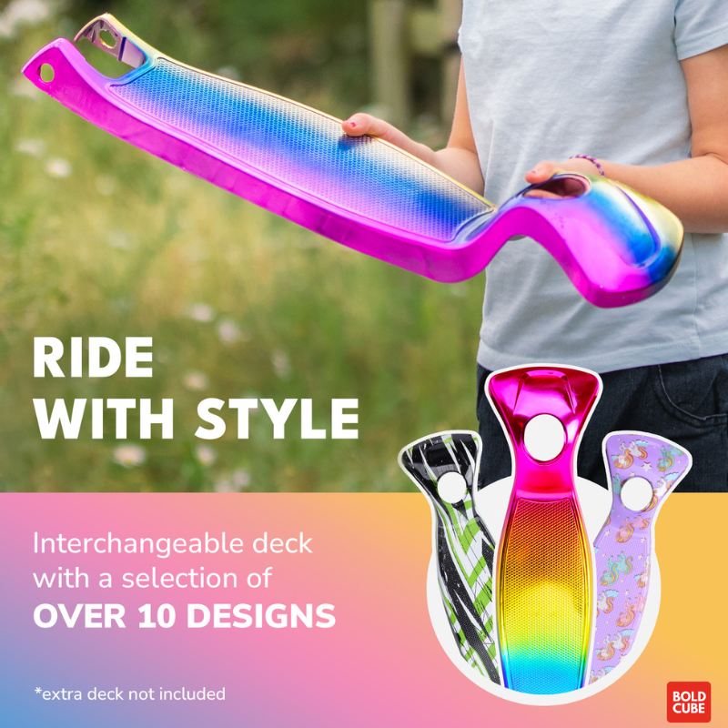 Introducing the world’s first Rainbow Chrome plated 3 Wheel Kick Scooter for kids, designed to turn heads with its hand-sprayed finish in vibrant shades of pink, yellow, green, and blue. Perfect for children aged 5 and older, this foldable scooter is engineered for travel, whether commuting in style or enjoying outdoor adventures. Its lean-to-steer mechanism nurtures balance and stability, while double stacked rear wheels provide bright flashing lights and a durable stomp brake for safety and functionality. Featuring bold colors and eye-catching designs, the scooter also includes rear wheel light reflectors for visibility. The simple pull-to-fold handlebar allows kids to easily store and carry the scooter after the school run. Plus, with all BOLDCUBE scooter parts being replaceable and accompanied by a set of Allen keys for maintenance, your child can enjoy endless fun while you rest easy knowing their scooter is built to last.