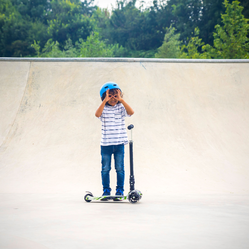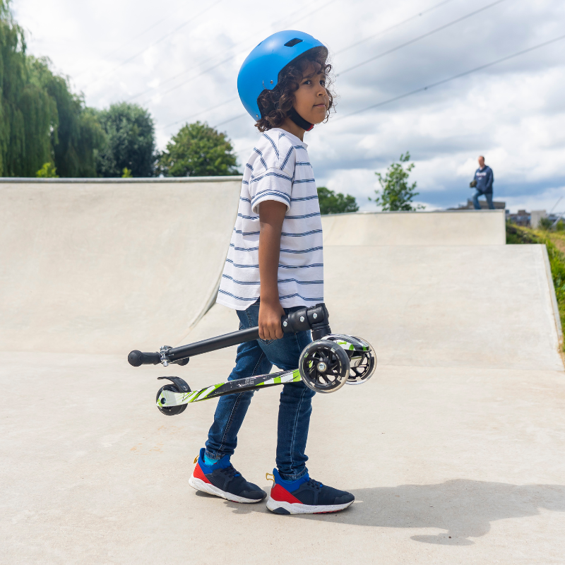 Our 3 Wheel Foldable Scooter is designed with travel in mind, making it the ideal choice for children aged 5 and older who want to commute in style or enjoy outdoor fun. As the first scooter in our range, it has been developed using insights from customer research to ensure the best experience for young riders. The scooter features a lean-to-steer mechanism that helps nurture balance and stability in budding scooting enthusiasts. With double stacked rear wheels for twice the bright flashing lights and a robust stomp brake, this foldable scooter combines safety and functionality while standing out in any crowd.