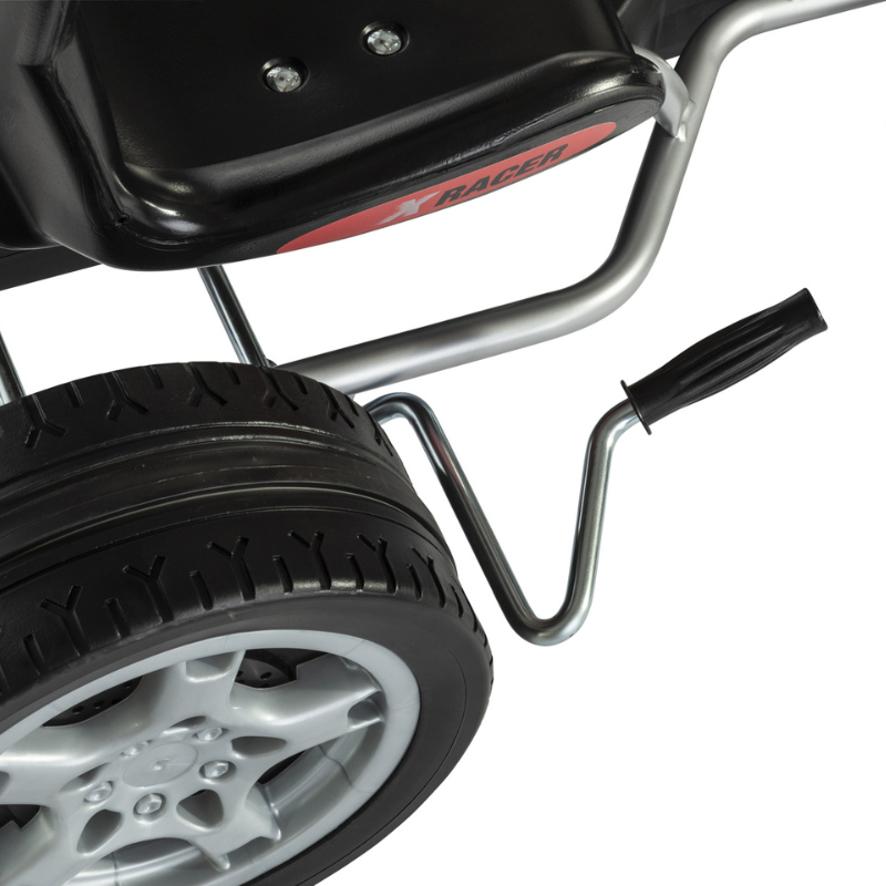 The Ferbedo GoKart CLAAS Racer is a high-quality ride-on vehicle for children aged 3 to 8, combining durability, safety, and fun. Its robust steel frame in sleek black ensures stability and longevity, while the freewheel mechanism allows effortless forward and backward motion without shifting gears for an easy and enjoyable driving experience. With an optimized turning radius for smooth maneuverability, the GoKart also features an ergonomically adjustable seat for personalized comfort and air-filled tires for excellent traction on various surfaces. A handbrake provides reliable stopping power, and the Ferbedo sound steering wheel adds playful, realistic driving sounds. Made in Germany and supporting up to 50 kg, the CLAAS Racer is perfect for fostering motor skills and active outdoor play.