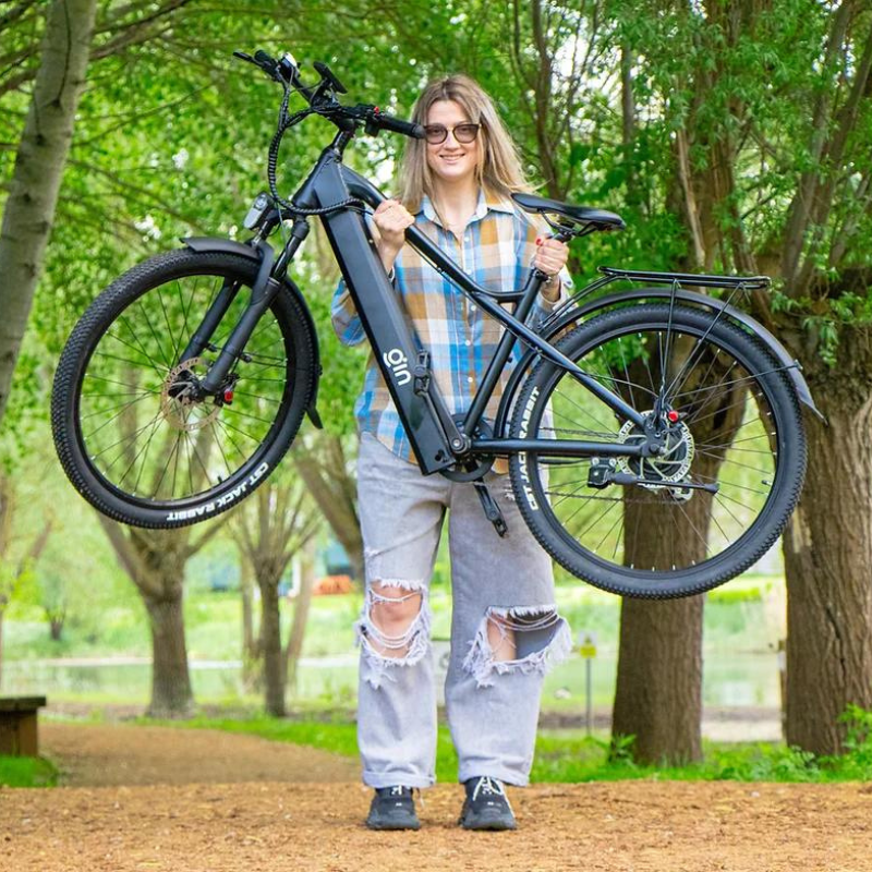 The GIN X 500W Electric Hybrid Bike is your ultimate companion for seamless city rides, efficient delivery jobs, and eco-friendly commuting. This sleek and lightweight bike combines cutting-edge technology with user-friendly features, boasting a 500W Brushless BAFANG Motor and a Tesla-grade battery providing a remarkable range of 60+ miles. Equipped with 7 gears, powerful hydraulic brakes by ZOOM, and 27.5" all-terrain tyres with anti-puncture technology, it’s designed to handle the demands of daily use while minimising your environmental footprint. Ideal for older riders, delivery jobs, and urban commuters, the GIN X ensures a comfortable, efficient ride with its aluminum alloy frame, integrated lights, and powerful suspensions. Additionally, all models include a headlight, tail light, fenders, charger, and throttle, making it a hassle-free and sustainable choice for commuting.
