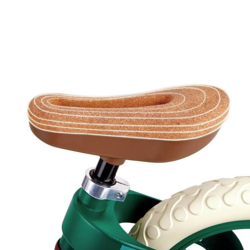 Parents will appreciate the convenient handle under the saddle, which makes the bike easy to lift and carry when needed. The puncture-proof PU tires are durable, flexible, and require no inflation, ensuring a smooth and hassle-free ride. The eco-friendly cork materials used for the handles, saddle, and footrest add a soft, warm, and shock-absorbent touch, enhancing comfort and safety. With its robust construction and easy assembly, this balance bike is built for durability, comfort, and fun, making it a fantastic choice for your child's early cycling adventures.