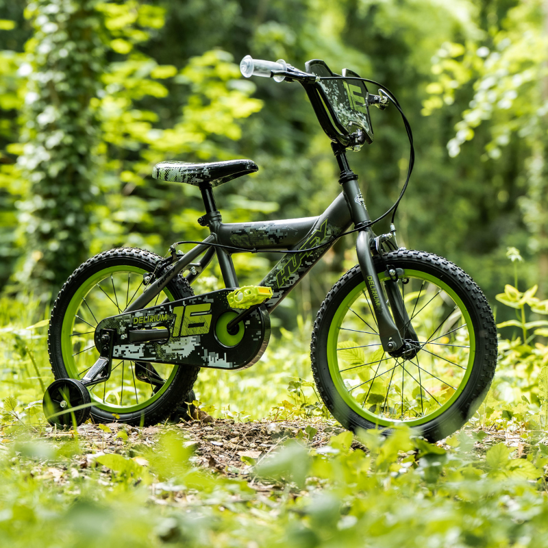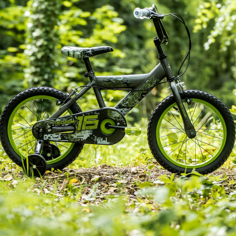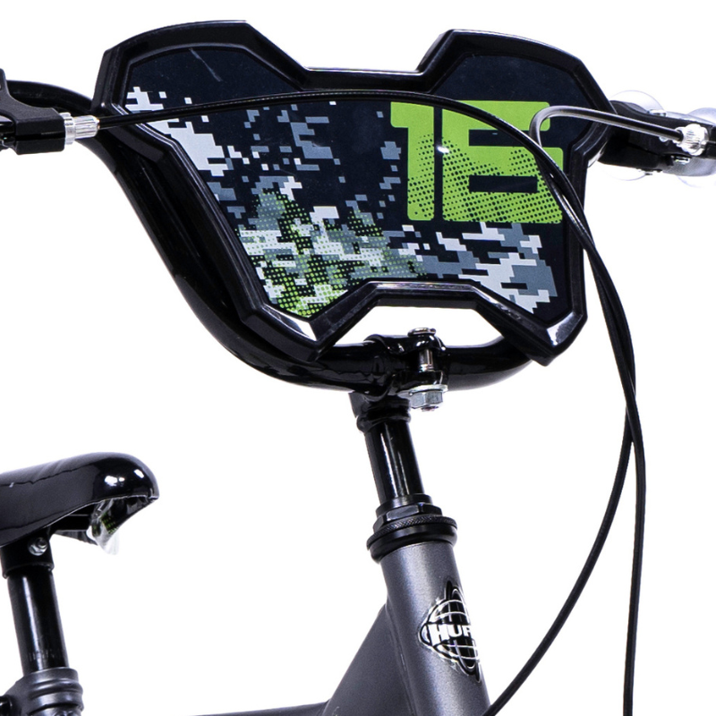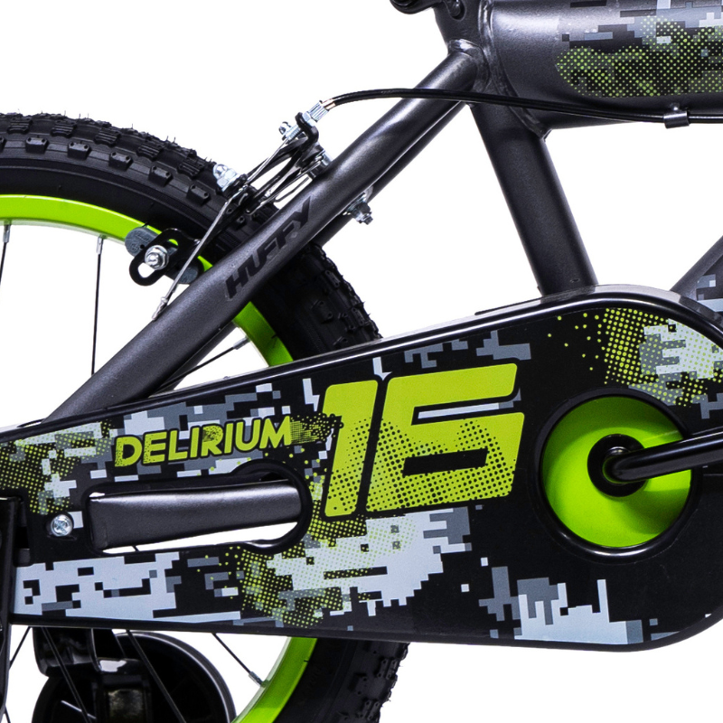 Get ready to rev up your child's racing spirit with the Huffy Delirium 16" BMX Style Bike, designed for young thrill-seekers aged 5-7. This rad bike features a cool, edgy style that's sure to turn heads, with a matte silver frame, black graphics, and racing number plate that demand attention and guarantee fun. With easy-to-use caliper brakes, translucent grips with dual-colour graphics, and a padded seat for comfort, this bike is perfect for kids who want to experience the thrill of cycling while having a blast. Plus, its adjustable seat post and street-wise green and gunmetal finish ensure a great fit and a stylish look that's sure to make them stand out from the crowd.