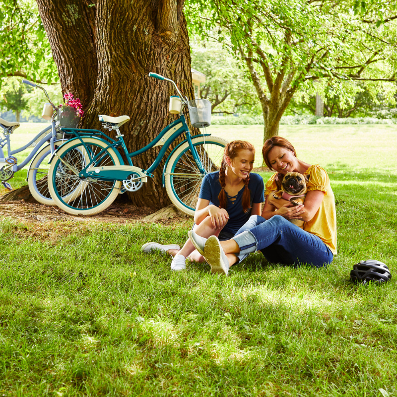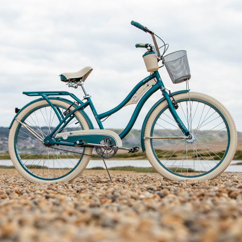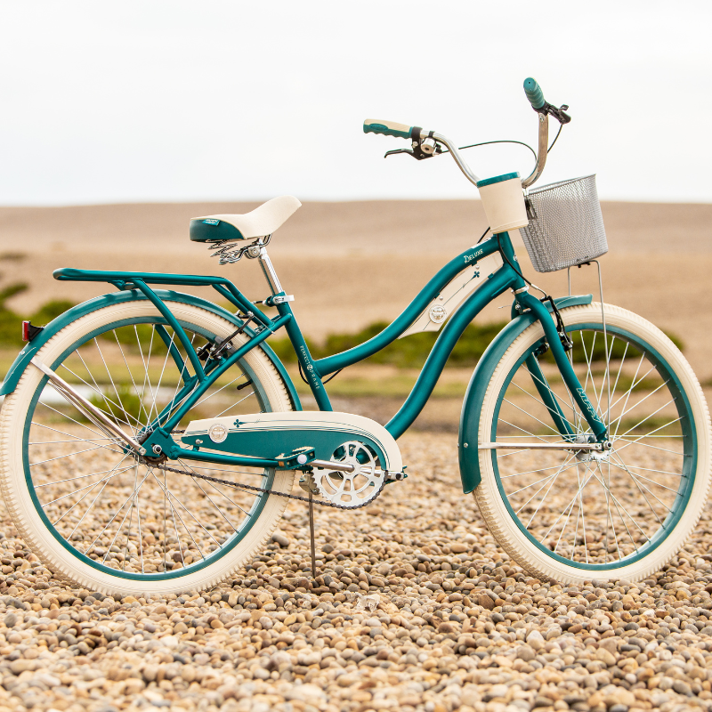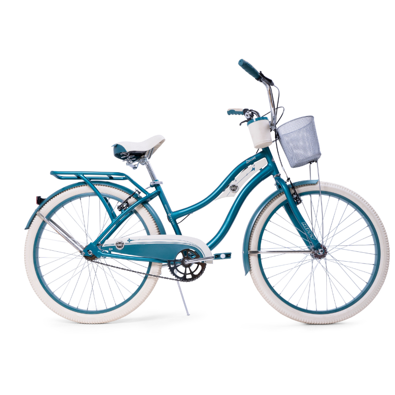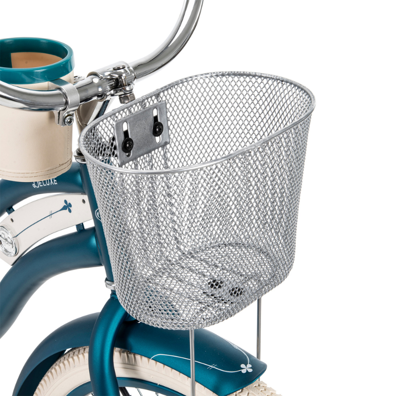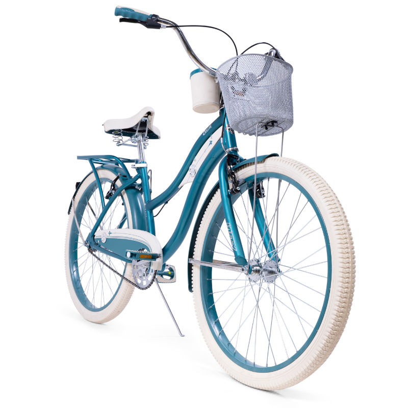 Adding to its charm, the Huffy Deluxe Cruiser features a deluxe padded spring saddle, dual-density grips, and pedals that further enhance your comfort, allowing you to ride for hours without strain. Practicality meets style with the included wire basket and beverage holder, perfect for carrying your essentials while you're on the go. The durable fenders not only keep you clean and dry by preventing splashes but also contribute to the bike's classic aesthetic. Available in a stunning teal color, the Huffy Deluxe Cruiser is more than just a bike; it’s an invitation to embark on new adventures and rediscover your love for cycling.