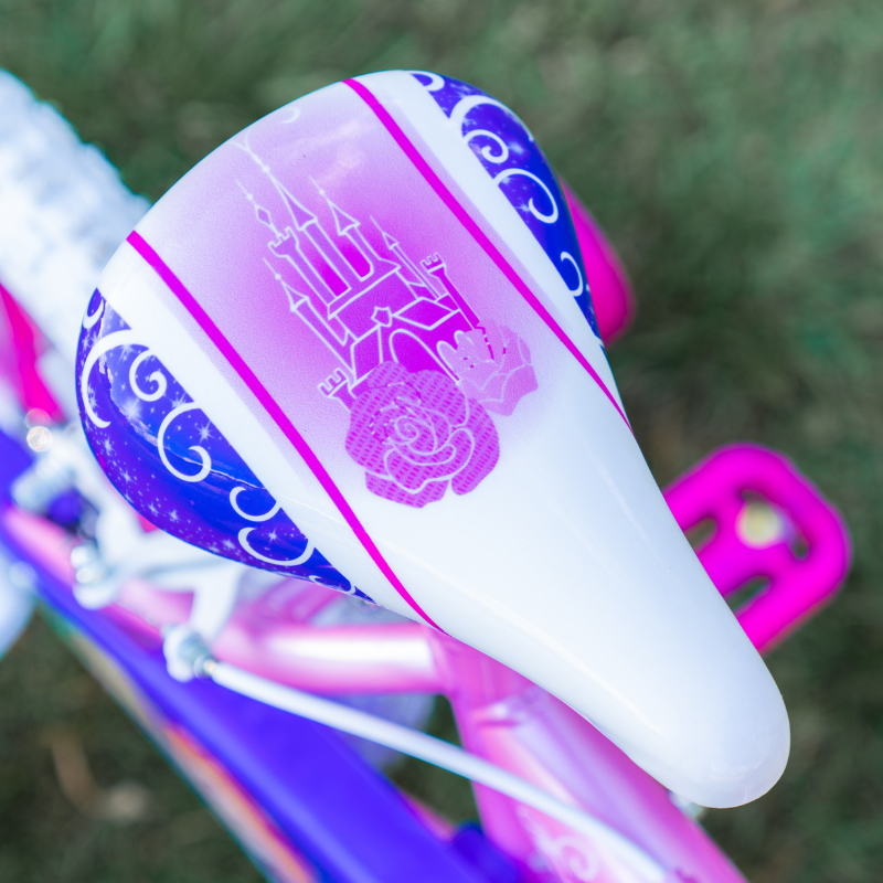 Designed with growing riders in mind, the Huffy Disney Princess Bike includes an adjustable seat to accommodate your child as they grow taller. The charming Disney Princess Doll Carrier on the handlebars adds an extra touch of magic, allowing little ones to take their favorite dolls along for the ride. Lightweight yet sturdy, this bike is easy to assemble and comes with partially inflated tires for quick setup. Whether cruising the driveway or embarking on fairy-tale adventures, this bike delivers hours of joy while ensuring safety and comfort. Encourage your child's imagination and love of cycling with this enchanting ride fit for royalty!
