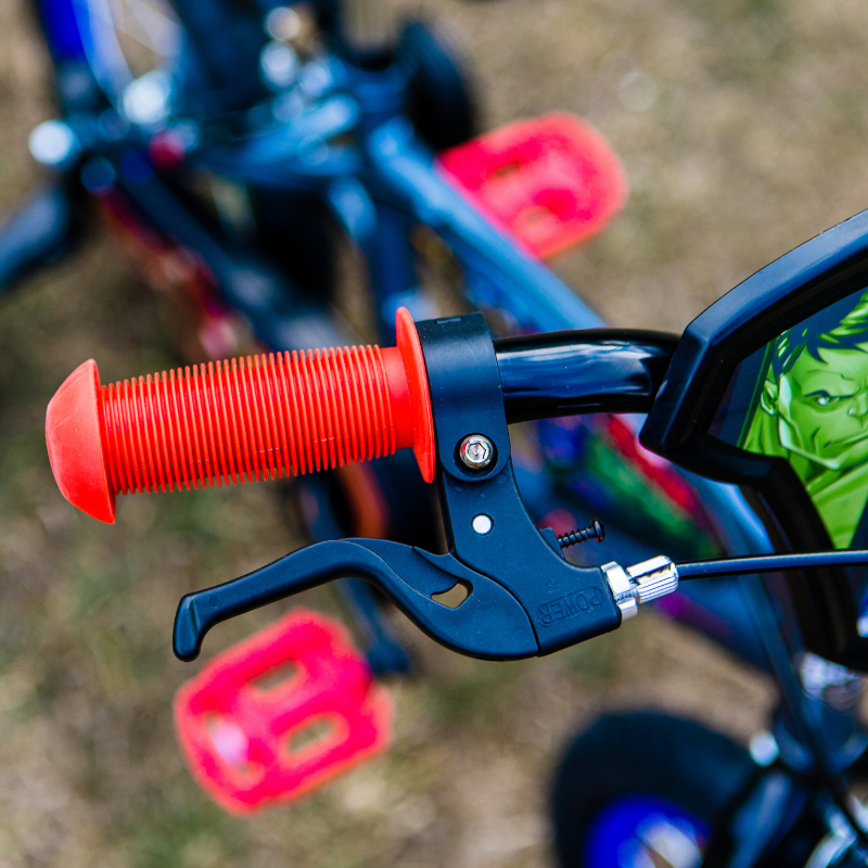 Unleash superhero excitement with the official Marvel Avengers 14" bike, designed for adventurous young riders aged 4 to 6 years. Packed with stunning Marvel Avengers graphics and featuring iconic characters like Hulk, Captain America, Iron Man, and Thor, this bike inspires your child to embark on their two-wheeled journey in style. The bike comes with removable stabilizers, making it an ideal first bike for early learners; once their confidence grows, they can easily transition to riding without them for thrilling family adventures. The frame showcases a vibrant inset artwork plate that brings the world of Marvel to life, while a full enclosed chainguard and rear mudguard keep your kiddo clean and safe during rides.