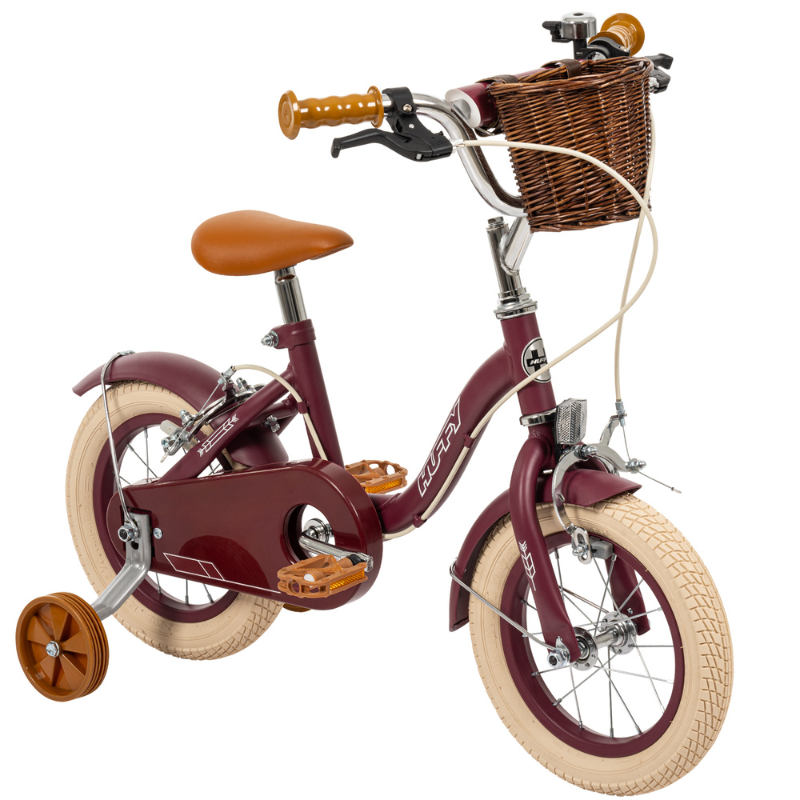Let your little one cruise in vintage style with the Huffy Vintage 12-inch Single Speed Girls’ Bike, designed for ages 3–5. Featuring a timeless matte burgundy finish, this bike blends classic charm with practical functionality, making it ideal for young riders mastering their first cycling adventures. The sturdy steel frame is equipped with front and rear steel side-pull caliper brakes, ensuring smooth and reliable stopping power. Removable stabilisers provide added confidence as they learn to ride, while a fully enclosed chainguard enhances safety. With a comfortable padded saddle, soft handlebar grips, and a charming front basket for toys or treasures, this bike is the perfect mix of style and comfort. Plus, its fenders keep your child clean and dry for worry-free outdoor fun.