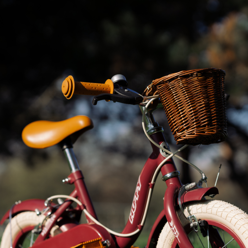 The Huffy Vintage 12-inch Single Speed Girls’ Bike is a charming ride designed for kids aged 3–5, combining timeless style with practical features to help young riders master their cycling skills. Its matte burgundy steel frame is equipped with front and rear steel side-pull caliper brakes for reliable stopping, while removable stabilisers offer added confidence as they learn. A padded saddle and soft handlebar grips ensure comfort, and thoughtful details like a fully enclosed chainguard, protective fenders, and a front basket for toys or treasures make it as functional as it is adorable. Perfectly sized for riders up to 27kg (60 lbs) and 1–1.25m tall, this bike arrives 85% pre-assembled, requiring only simple setup to get ready for countless vintage-inspired adventures.