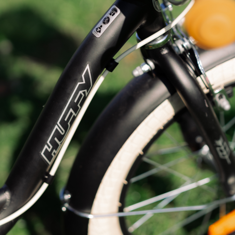 The Huffy Vintage 16-inch Girls’ Bike in black is a stylish and safe first bike for kids aged 4–6 years. Featuring removable stabilisers, a front basket, handlebar bell, padded saddle, and soft grips, it provides comfort and confidence for new riders. Front and rear caliper brakes offer reliable control, and the fully enclosed chainguard keeps clothing protected.