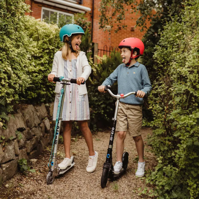 The Micro helmet combines top-tier safety with kid-friendly features, making it a perfect choice for young riders. Crafted with a solid ABS shell and EPS foam lining, it effectively absorbs impact while providing full coverage around the head and forehead. An integrated LED rear light and reflective logo enhance visibility, and adjustable sizing with multiple vents keeps kids cool and comfortable as they grow. Its easy squeeze buckle and protective chin pad allow children to secure it independently without pinching. With stylish designs, luxurious padding, and Micro’s durability, this helmet promises safe, comfortable adventures for every scooting or cycling journey.