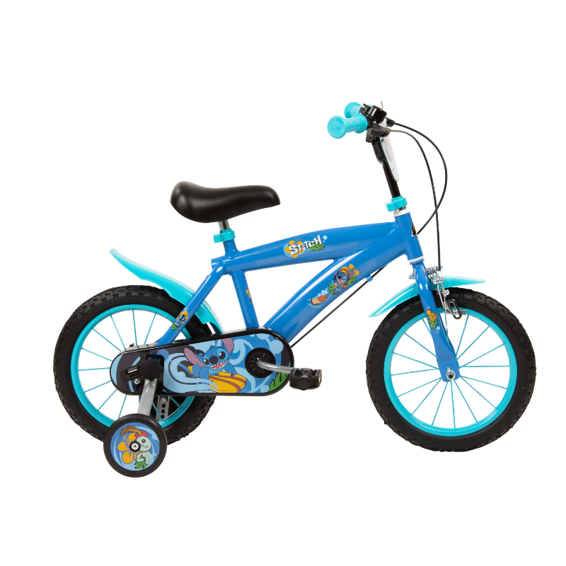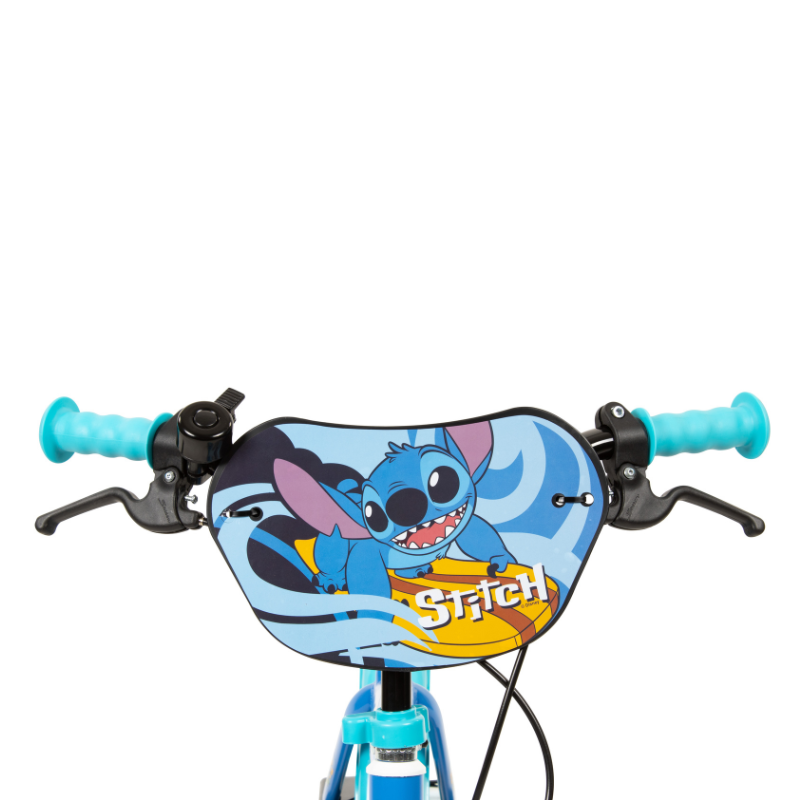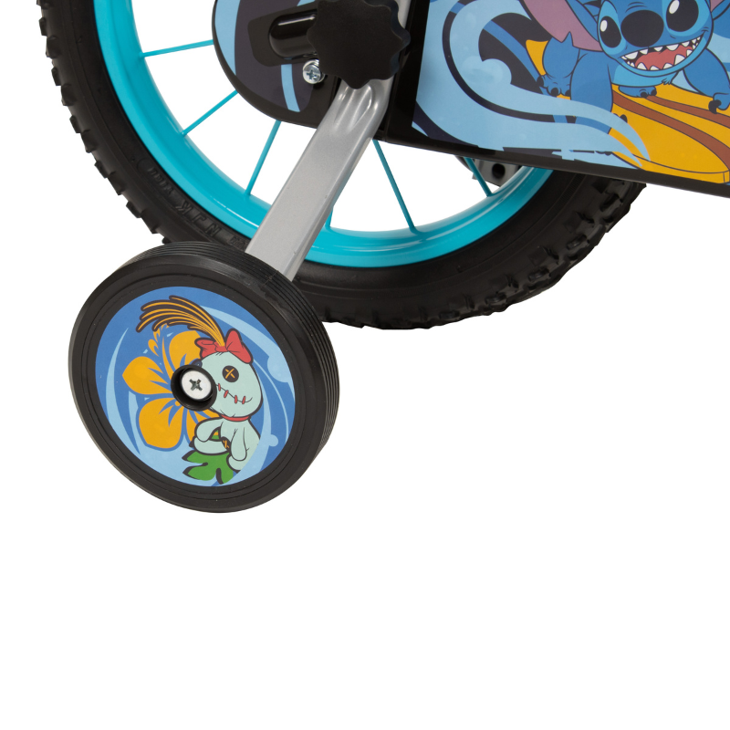 This vibrant Stitch-themed 14” bicycle is perfect for young riders aged 4-6 years and designed with both fun and functionality in mind. Featuring a reliable front caliper brake, rear drum brake, sturdy spoked wheels, and pneumatic tyres, it ensures a smooth and safe ride. The adjustable saddle and handlebars allow it to grow with your child, while the removable stabilisers provide balance for beginners. With colourful Stitch decals and a playful design, it inspires outdoor adventures and is ideal for kids with a height range of 100–110 cm.