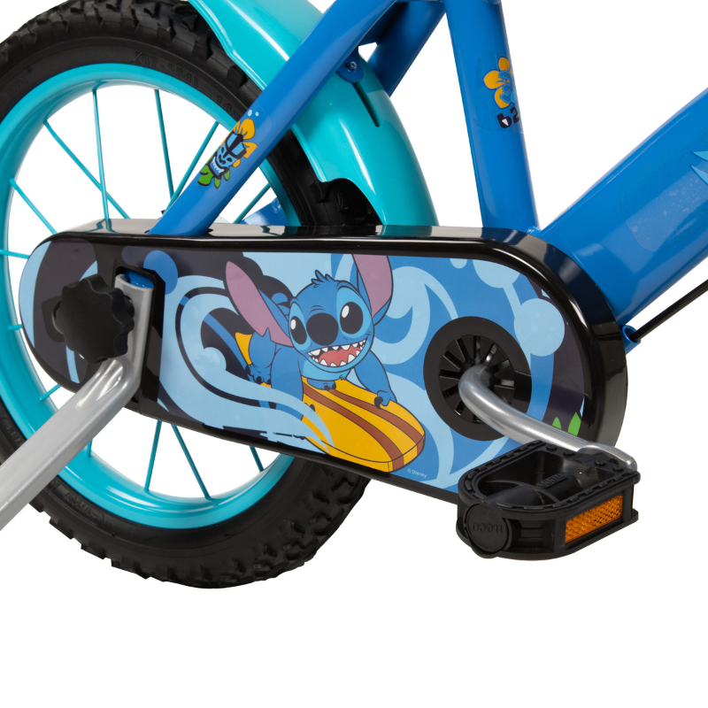 Let your little one embark on exciting adventures with this vibrant Stitch-themed 14” bicycle, designed for budding cyclists aged 4-6 years. It’s packed with features to ensure safety and comfort, including a reliable front caliper brake and a rear drum brake for excellent control. The sturdy spoked wheels and pneumatic tyres provide a smooth ride, while the mudguards keep splashes at bay. Removable stabilisers offer extra balance for beginners and can be easily detached as your child’s skills grow.