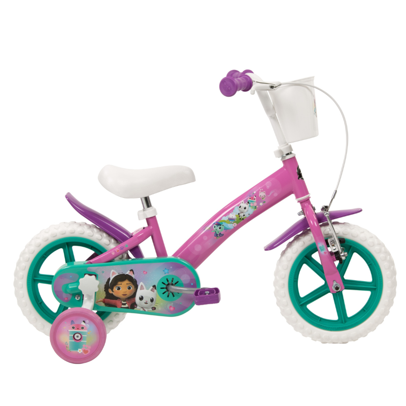 The Gabby’s Dollhouse 12-Inch Bike is a colorful and fun choice for young riders aged 3 to 5, featuring vibrant themed decals that will capture their imagination. This bike comes with a fixed rear wheel that stops when pedaling stops, helping kids develop control, alongside a powerful V-type front brake for reliable stopping. It has puncture-proof EVA tires and removable stabilisers to support beginners as they build confidence. With an adjustable saddle and handlebars for a comfortable fit, plus a front basket for carrying toys or treasures, this bike is perfect for children between 85 and 100 cm tall looking to enjoy safe and playful rides.