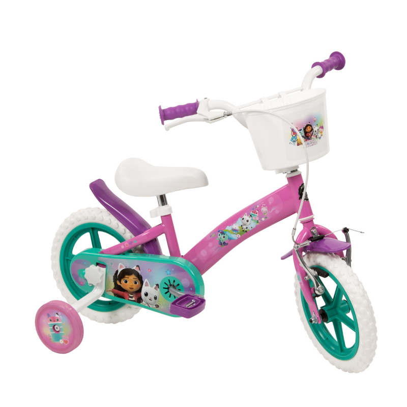 Designed with young riders in mind, this bike includes removable stabilisers to support beginners as they build confidence. The adjustable saddle and handlebars ensure a comfortable and personalized fit as your child grows. A handy front basket adds a practical and playful touch, perfect for carrying toys or treasures along the way. Suitable for children between 85 and 100 cm tall, the Gabby’s Dollhouse bike is a charming and safe choice for introducing your child to the joys of cycling.