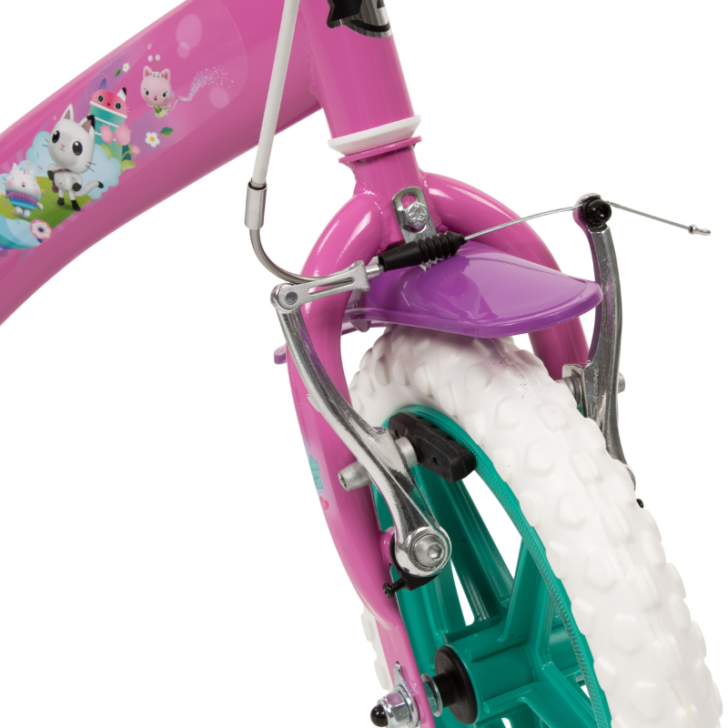The Gabby’s Dollhouse 12-Inch Bike is a delightful ride designed to bring fun and excitement to young riders aged 3 to 5. Featuring vibrant, colorful decals inspired by the beloved Gabby’s Dollhouse, this bike captures the imagination of any little fan. Equipped with a fixed rear wheel, the bike stops as soon as the pedalling does, helping kids develop better control and coordination. The powerful V-type front brake offers reliable stopping power, while the puncture-proof EVA tires provide smooth, worry-free rides on various surfaces.