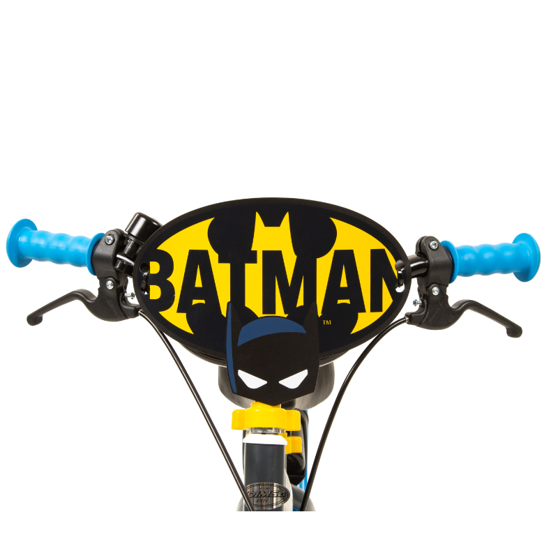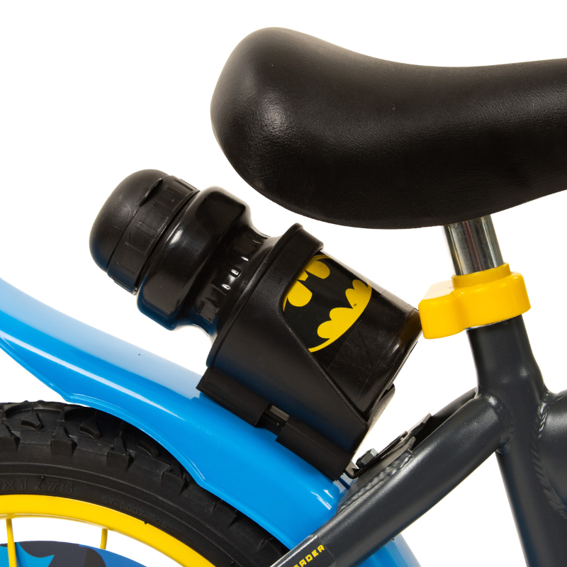 Designed for comfort and practicality, the bike boasts an adjustable saddle and handlebars, allowing it to grow with your child. The included rear drinks holder with a bottle ensures hydration on the go, while the large Batman front shield adds a bold and heroic flair. This bike combines style, functionality, and fun, making it an excellent choice for young Batman fans ready to hit the road.