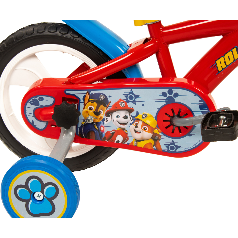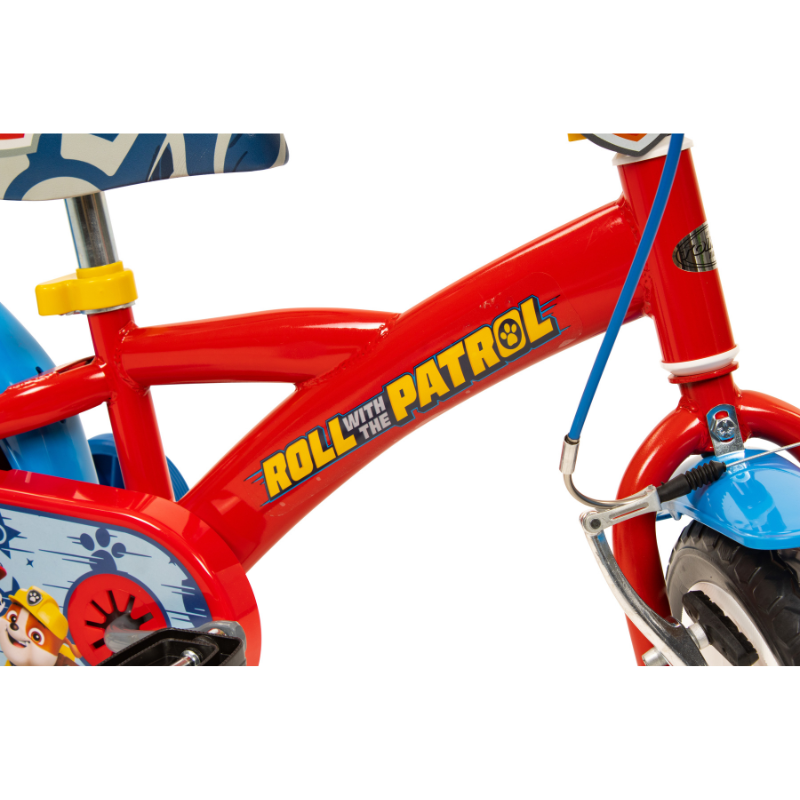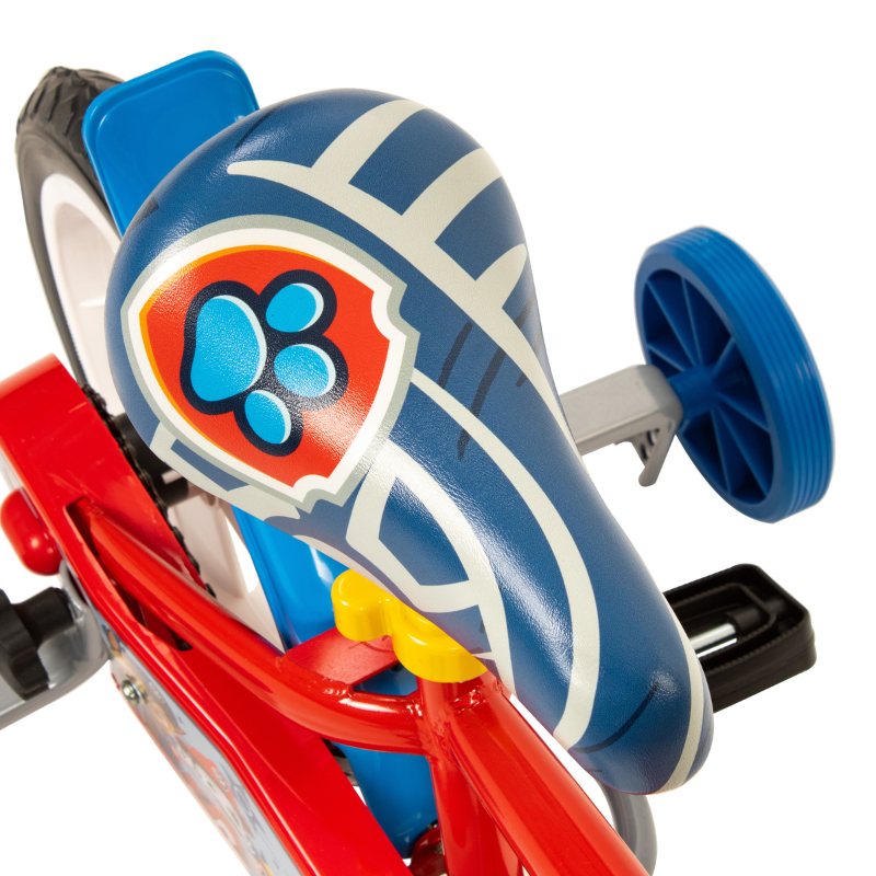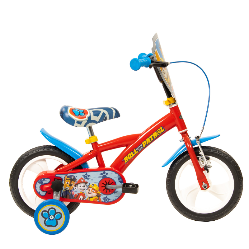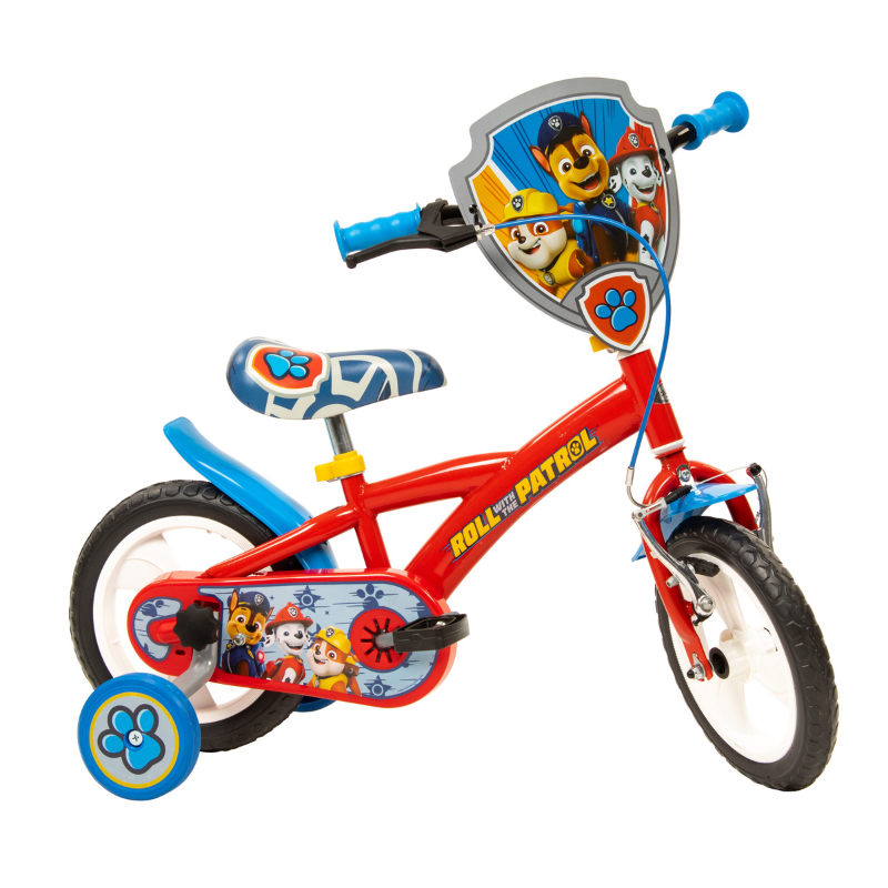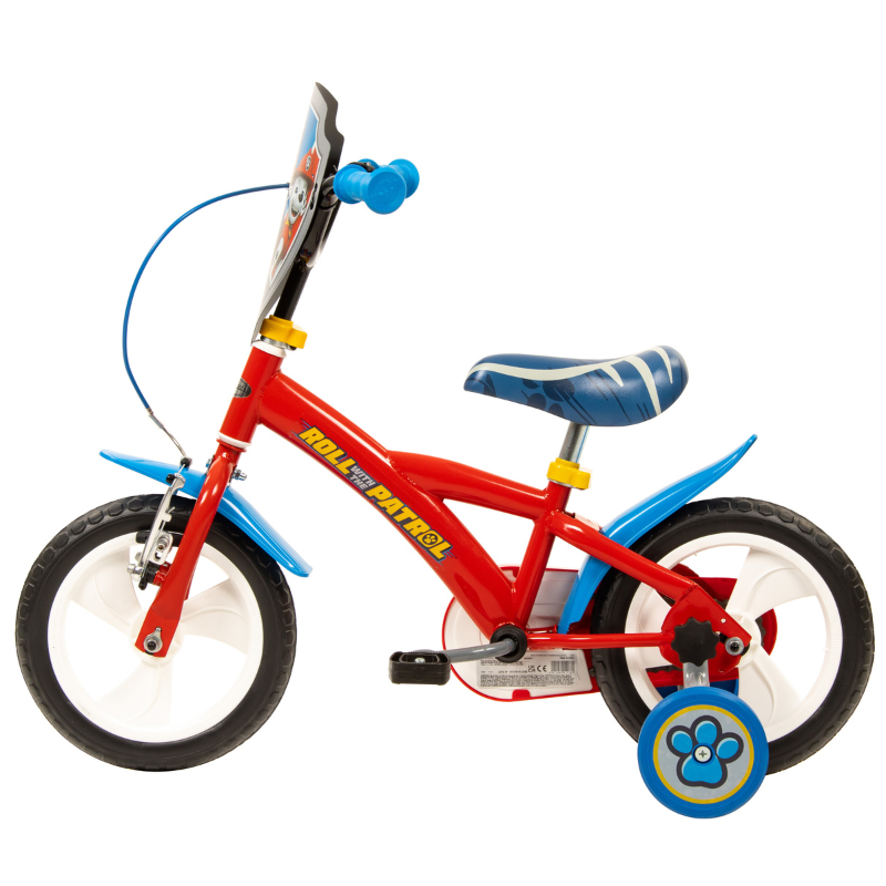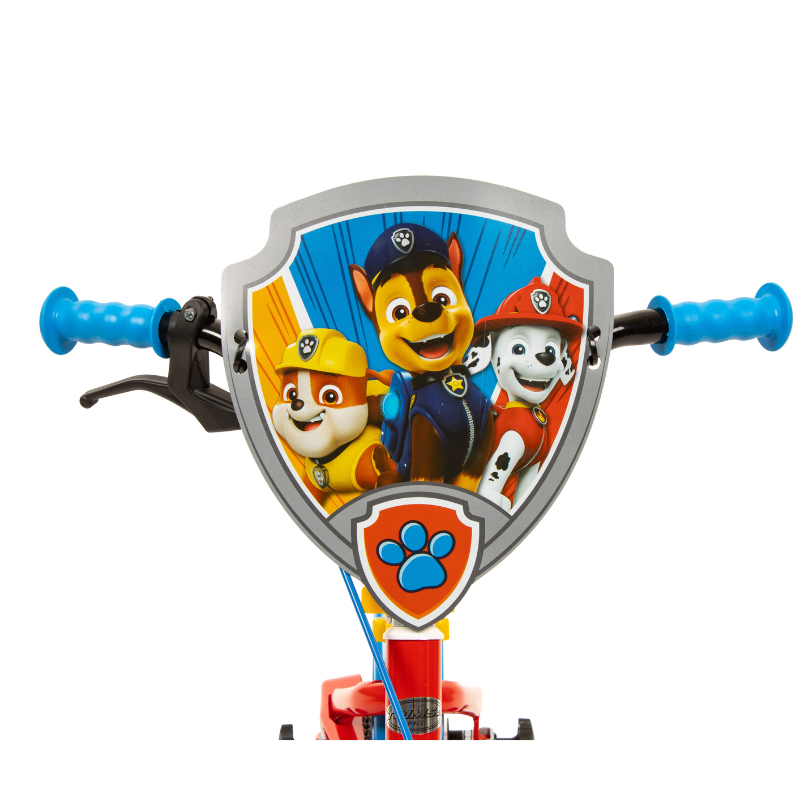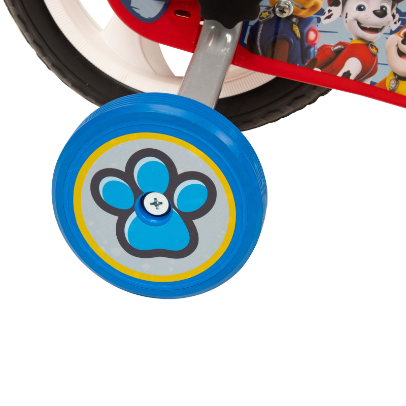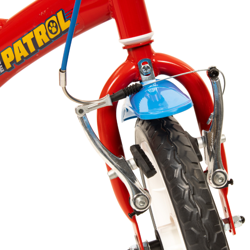 The red Paw Patrol 12” Bicycle is perfect for little adventurers aged 3 to 5 years (height 86-100 cm). Featuring a fixed rear wheel that stops when pedaling stops and a powerful V-type front brake, it ensures safety and control for young riders. Its puncture-proof EVA tires and sturdy mudguards provide a smooth, hassle-free ride, while removable stabilizers help build confidence. With an adjustable saddle and handlebars for a custom fit, a front shield, and vibrant Paw Patrol decals, this bike is ready to accompany your child on countless fun-filled missions!