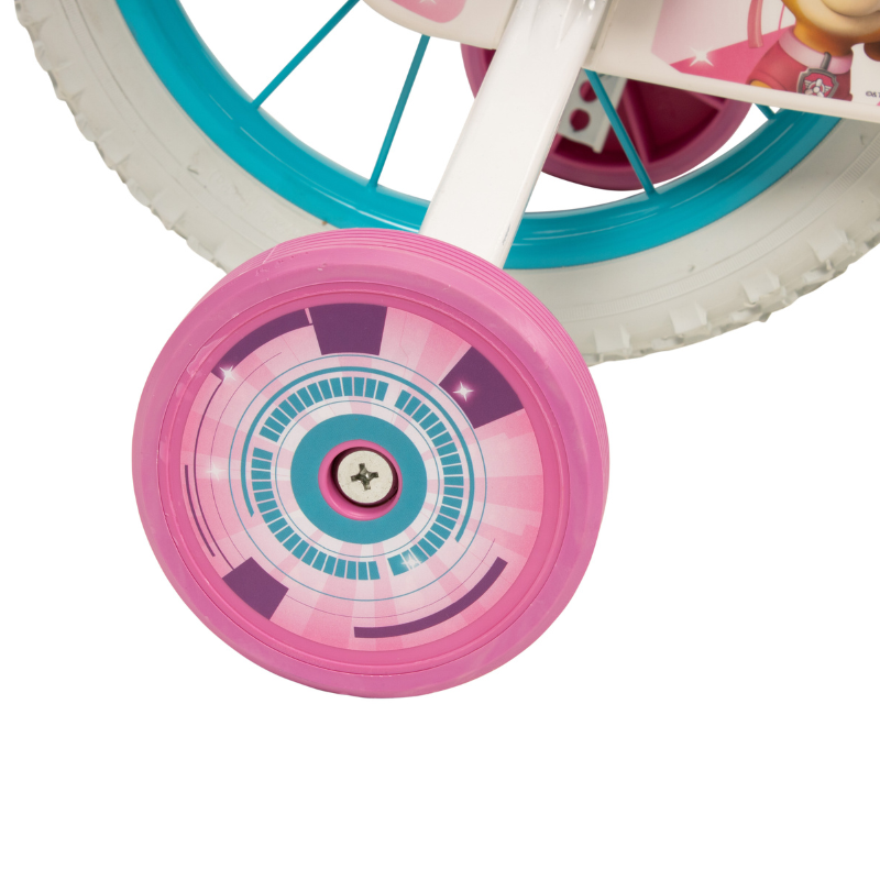 Let your little one join the Paw Patrol team with this freewheeling white 14” licensed bicycle, perfect for kids who love adventure. Equipped with a front calliper brake and a rear drum brake, it ensures safe and reliable stopping. The spoked wheels with pneumatic tires and sturdy mudguards provide a smooth ride, while removable stabilisers offer added balance for beginners as they gain confidence. Designed with both fun and function in mind, this bike is built to make every ride exciting and safe.